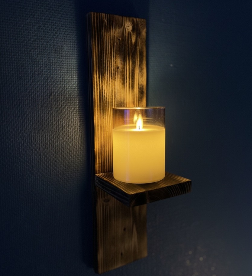 Stemningsfuld Belysning: Hyldens design kaster et smukt, blødt lys (fra et tændt lys/LED) mod væggen, hvilket skaber en varm og indbydende atmosfære i ethvert rum – fra stuen til soveværelset.